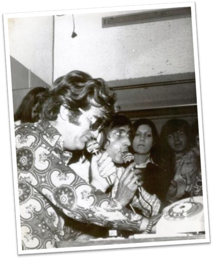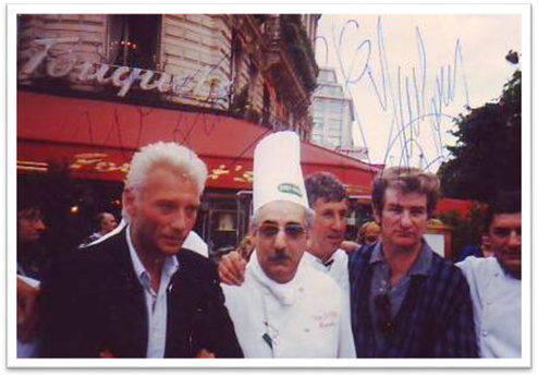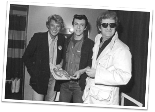 1980, loge de l‘Olympia avec Johnny, Alain Chenneviere et Eddy